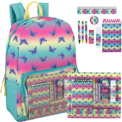 17 Inch Butterfly Printed Backpack With 8 Piece School Supply Kit