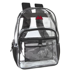 18-Inch Clear Backpack with Side Mesh Pockets & Reflective Patch - Black